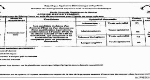 - إعلان عن توظيف بالمدرسة العليا للأساتذة ببشار