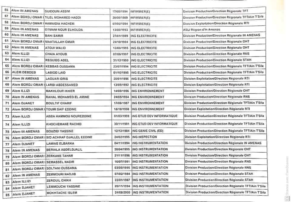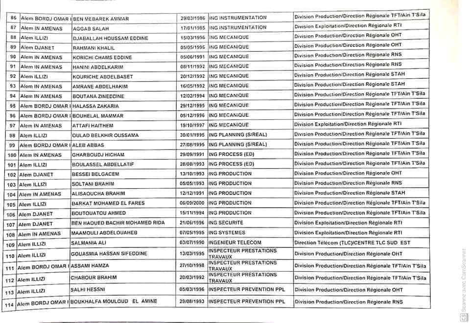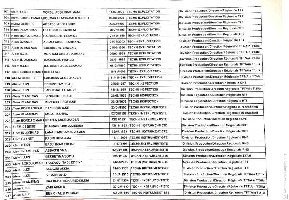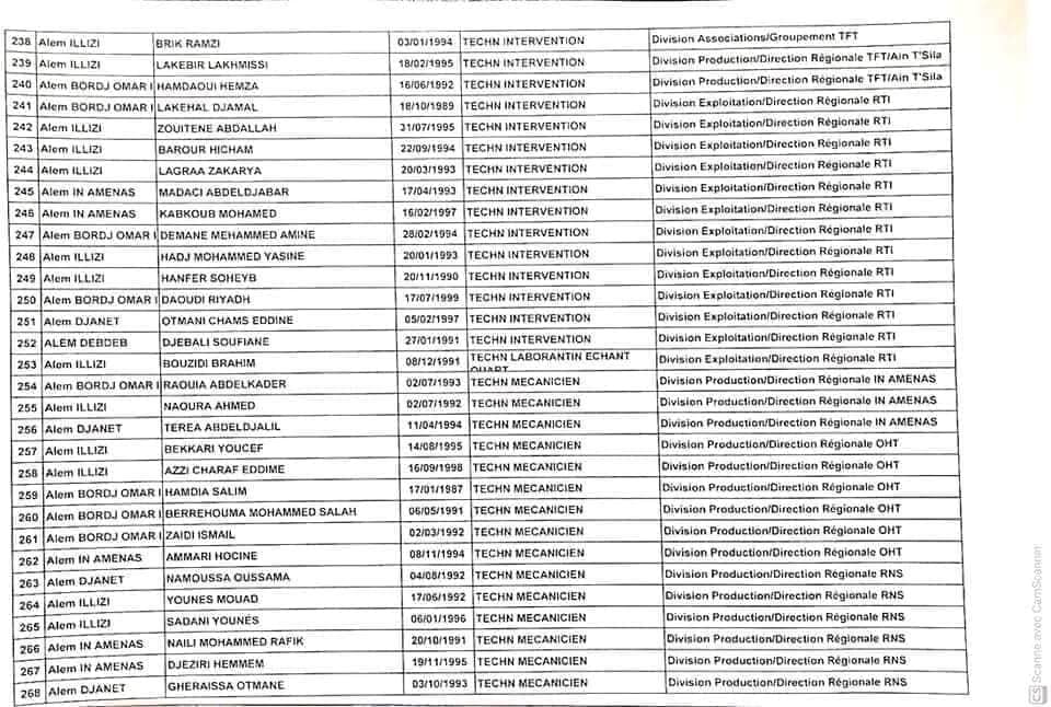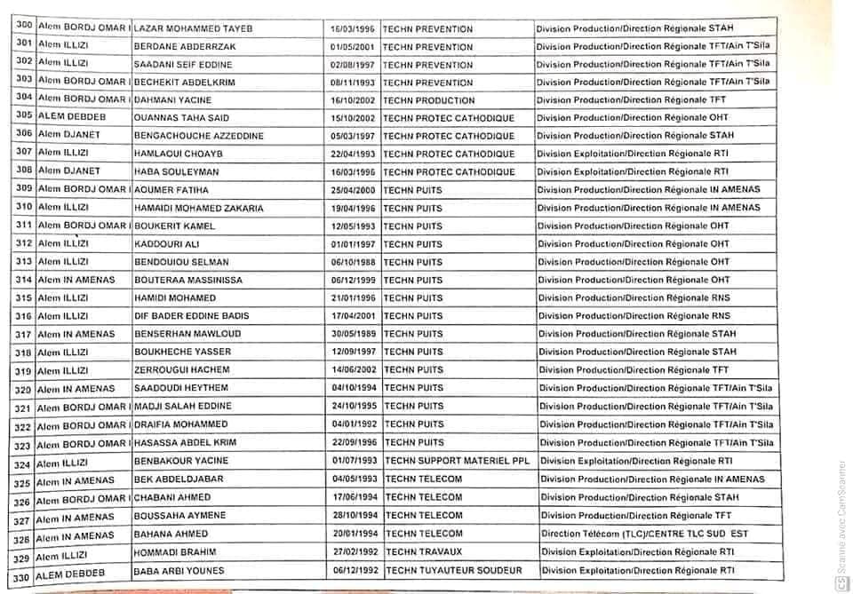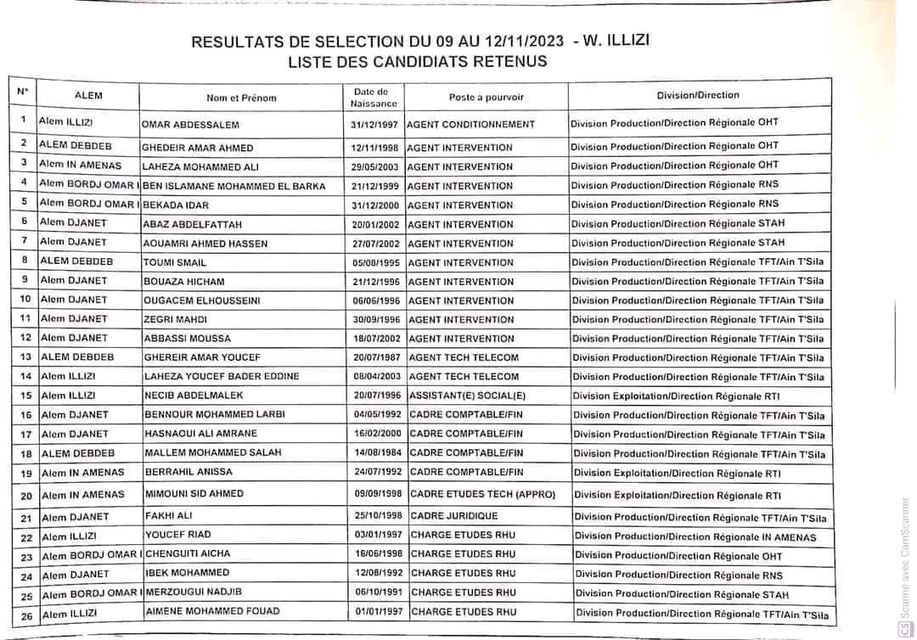 اعلان نتائج الانتقاء الخاص مسابقة سونطراك اليزى