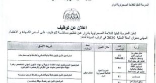 أكمل القراءة »إعلان عن مسابقة توظيف بالمدرسة العليا للفلاحة الصحراوية