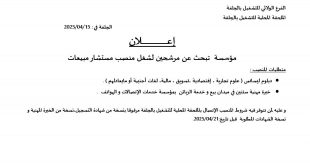 أكمل القراءة »مؤسسة عمومية تبحث عن مرشحين لشغل المناصب التالية: