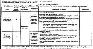اعلانات توظيف الولايات المعنية: الجزائر العاصمة، بومرداس، تيبازة، البليدة، سطيف، قسنطينة، تيسمسيلت، ايليزي، باتنة، مستغانم، تندوف، تمنراست، بشار، غليزان، الشلف، الجلفة، وهران يرجى من المهتمين التقرب من الادارة المعنية بالعرض او الملحقة المحلية للتشغيل حسب طبيعة الاعلان ads المدرسة الوطنية العليا للفلاحة إعلان توظيف …