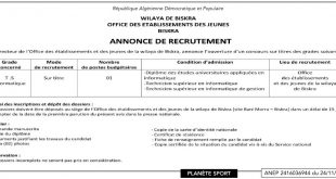 ads اعلانات توظيف الولايات المعنية: الجزائر العاصمة، تيبازة، غرداية، تيزي وزو، بسكرة، تيارت، عين الدفلى، سطيف، المغير، سعيدة، المدية، الشلف، المسيلة ads يرجى من المهتمين التقرب من الادارة المعنية بالعرض او الملحقة المحلية للتشغيل حسب طبيعة الاعلان إعلان عن توظيف بالمجلس الأعلى للشباب: الجزائر …