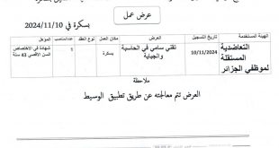 أكمل القراءة »عرض عمل بالتعاضدية المستقلة لموظفي الجزائر