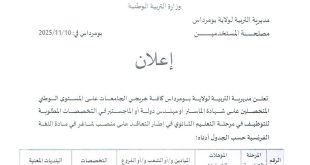 وزارة التربية الوطنية مديرية التربية لولاية بومرداس ads بومرداس في: 2025/11/10 إعلان تعلن مديرية التربية لولاية بومرداس كافة خريجي الجامعات على المستوى الوطني المتحصلين على شهادة الماستر أو مهندس دولة أو الماجستير في التخصصات المطلوبة للتوظيف في مرحلة التعليم الثانوي في إطار التعاقد على …