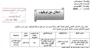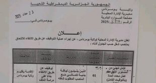 اعلانات توظيف الولايات المعنية: الجزائر العاصمة، بومرداس، البليدة، المدية، عين الدفلى، سيدي بلعباس، مستغانم، عنابة الاغواط، تيزي وزو، جيجل، قسنطينة، تيارت، ورقلة، بسكرة، الشلف، خنشلة، غليزان، تلمسان وسوق أهراس يرجى من المهتمين التقرب من الادارة المعنية بالعرض او الملحقة المحلية للتشغيل حسب طبيعة الاعلان …
