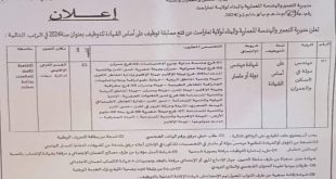 الجمهورية الجزائرية الديمقراطية الشعبية وزارة الأشغال العمومية والمنشآت القاعدية مديرية الأشغال العمومية لولاية تمنراست ads إعلان عن إجراء مسابقات التوظيف تعـلن مديرية الأشغال العمومية لولاية تمنراست عن إجراء مسابقات للتوظيف على أساس الشهادات لسنة 2024 للالتحاق بالرتب التالية: مديرية التربية تفتح مسابقة توظيف العمال …