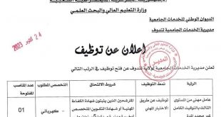 اعلان عن توظيف بمديرية الخدمات الجامعية لولاية تندوف