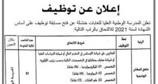 أكمل القراءة »اعلان توظيف بالمدرسة الوطنية العليا للغابات خنشلة