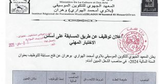 أكمل القراءة »إعلان عن توظيف بالمعهد الجهوي للتكوين الموسيقي وهران في سيدي بلعباس وغليزان