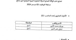 أكمل القراءة »قائمة الناجحين في مسابقة التوظيف لدى الوكالة التجارية لشركة الخطوط الجوية الجزائرية