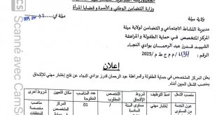 وزارة التضامن الوطني و الأسرة و قضايا المرأة ولاية ميلة مديرية النشاط الاجتماعي و التضامن لولاية ميلة المركز المتخصص في حماية الطفولة والمراهقة ads إعلان يعلن المركز المتخصص في حماية الطفولة والمراهقة عبد الرحمان بوزادي النجاء عن فتح إختيار مهني للإلتحاق بمنصب الشغل المبين …
