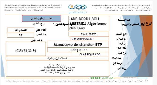 الجزائرية للمياه – ADE BORDJ BOU ARERIDJ – فرع برج الغدير.