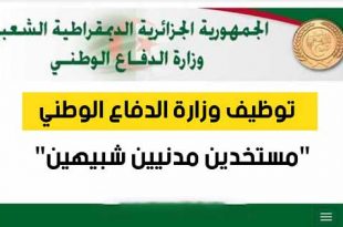 وزارة الدفاع الوطني الجزائرية ads التسجيلات الأولية لتوظيف المستخدمين المدنيين الشبيهين متواصلـــــــــــــــــة عبر الموقع الرسمي لوزارة الدفاع الوطني. شروط توظيف المستخدمين المدنيين الشبيهين الجنسية الجزائرية؛ تسوية الوضعية تجاه الخدمة الوطنية؛ حيازة شهادة في الاختصاص المطلوب؛ الإقامة في الولاية التي يفتح فيها المنصب؛ النجاح في …