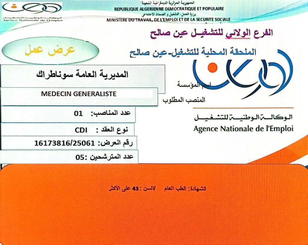 MEDECIN GENERALISTE | 01 | الطب العام | 43 على الأكثر | |