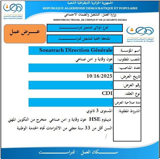 المديرية العامة سوناطراك توظف أعوان وقاية وأمن صناعي: