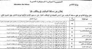 إعلان توظيف على مستوى الإدارة المركزية لوزارة المناجم بالمرادية بالجزائر العاصمة