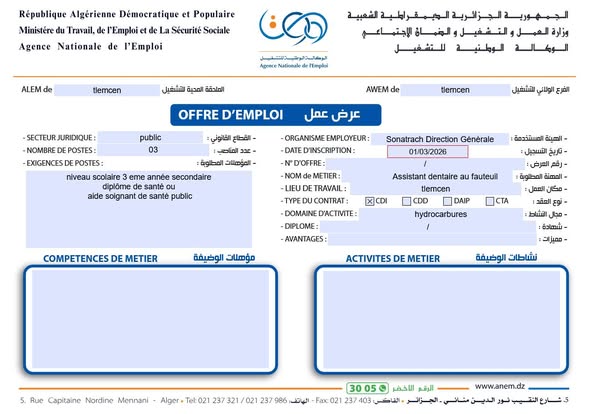 الهيئة المستخدمة: سوناطراك – المديرية العامة (Sonatrach Direction Générale)