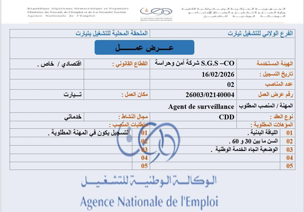 Agent de surveillance (عون حراسة)0226003/021400041. اللياقة البدنية.
