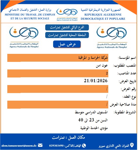 - اعلان توظيف أعوان أمن وحراسة في مختلف الشركات
