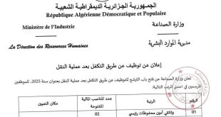 - إعلان توظيف على مستوى الإدارة المركزية لوزارة الصناعة
