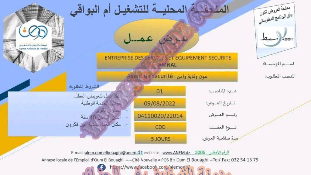 تعلن الملحقة المحلية للتشغيل ام البواقي عن توفر عرض عمل بمؤسسة AMNAL في المناصب المبينة ادناه