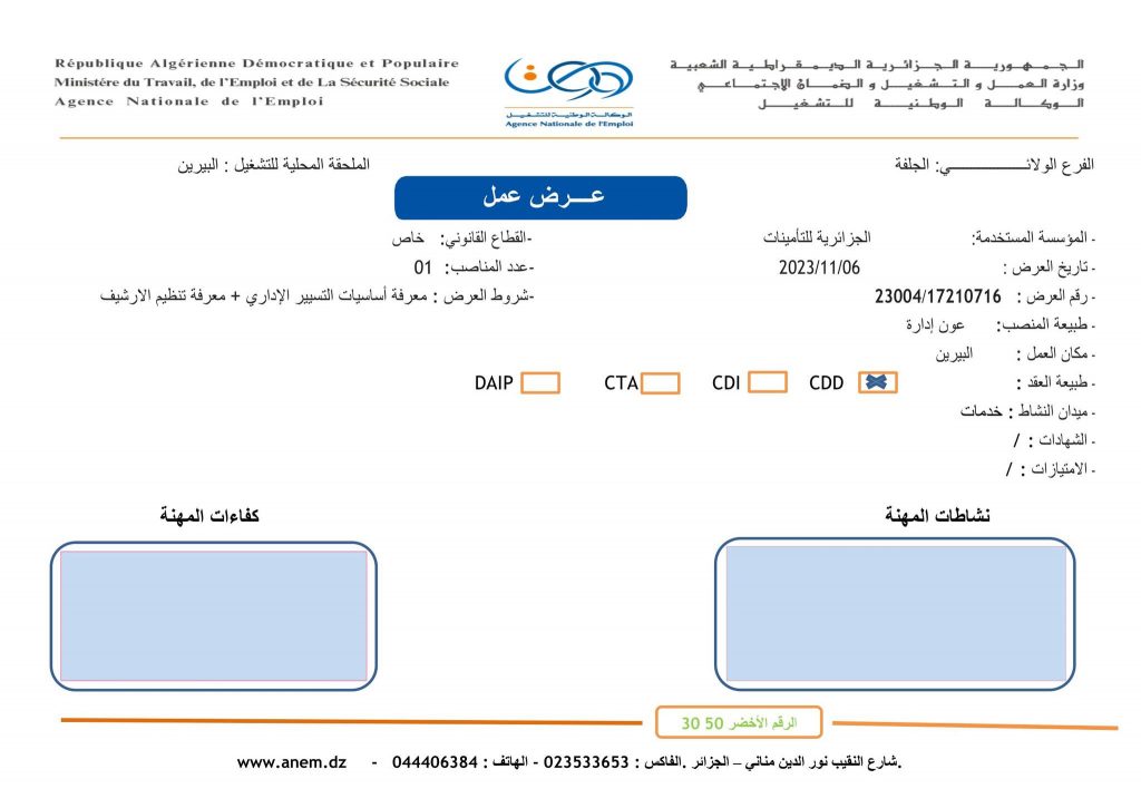 تعلن الملحقة المحلية للتشغيل مستغانم عرض عمل بالجزائرية للتامينات كما هو موضح ادناه
