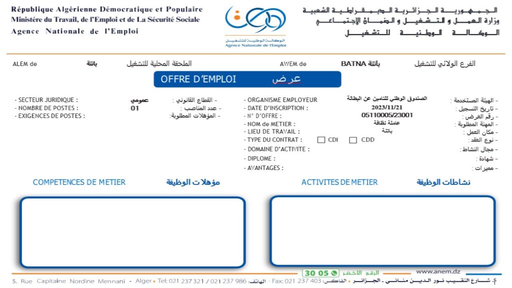عرض عمل بالصندوق الوطني للتامين عن البطالة شاركها Facebook Twitter LinkedIn Pinterest الفرع الولائي للتشغيـل