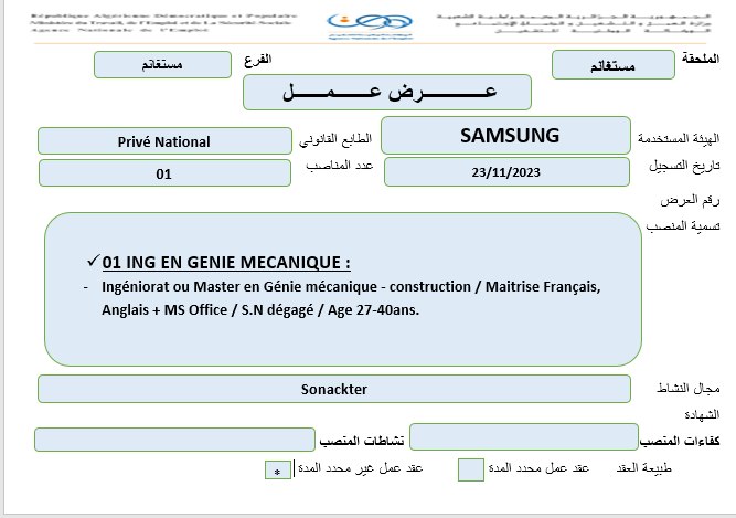 تعلن الملحقة المحلية للتشغيل مستغانم عن عرض عمل بشركة سامسونغ SAMSUNG كما هو موضح ادناه