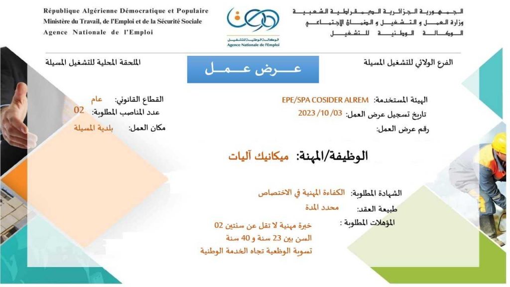 عروض عمل جديدة بشركة كوسيدار cosider بالولايات التالية: شاركها Facebook Twitter LinkedIn Pinterest عروض عمل جديدة بشركة كوسيدار cosider بالولايات التالية: بجاية المسيلة الجلفة الفرع الولائي للتشغيـل بجاية الملحقة المحلية للتشغيل