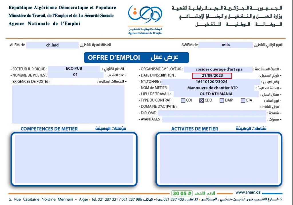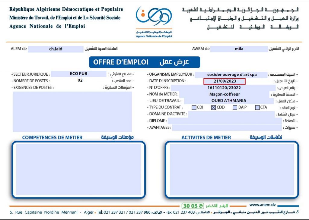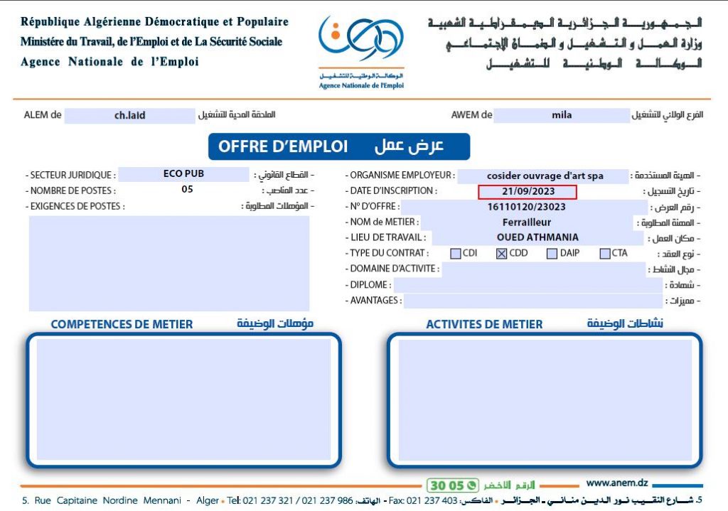 تعلن الملحقة المحلية للتشغيل شلغوم العيد ميلة عن عرض عمل بشركة كوسيدار cosider Ouvrage d’art كما هو موضح ادناه
