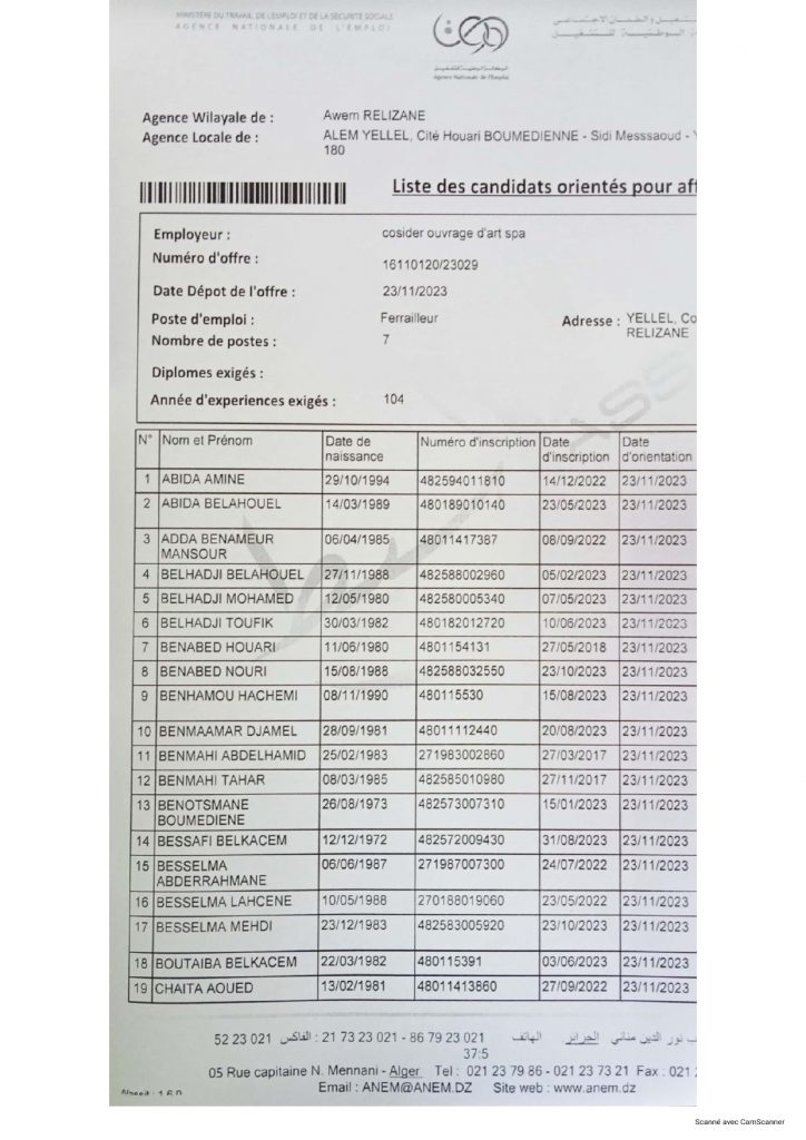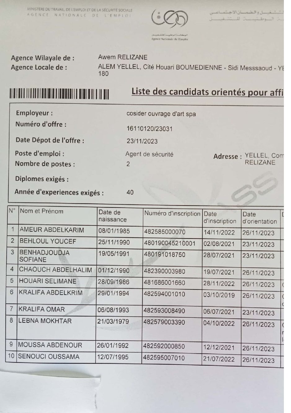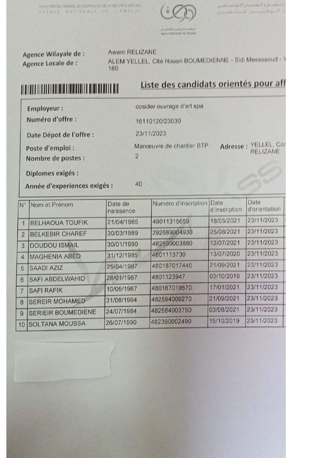 عرض عمل بشركة كوسيدار Cosider Ouvrages d’Art نوفمبر 2023 شاركها Facebook Twitter LinkedIn Pinterest الفرع الولائي للتشغيـل