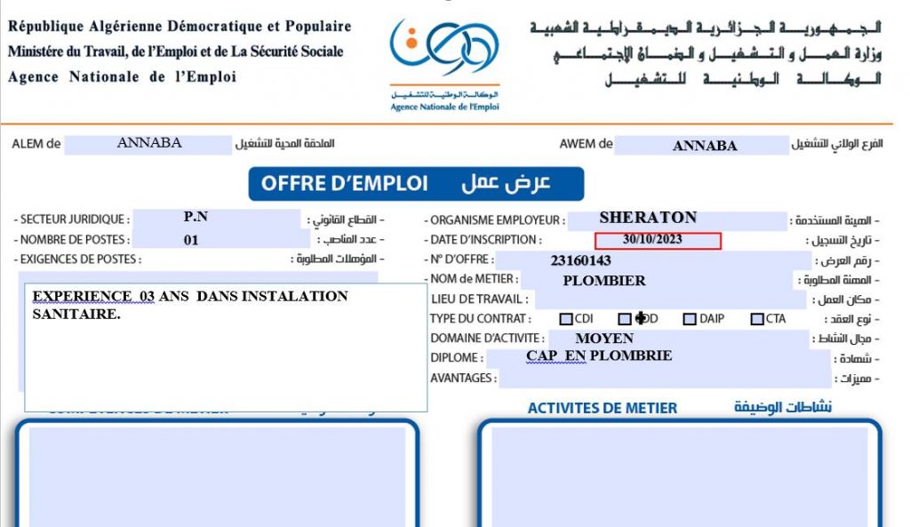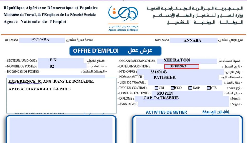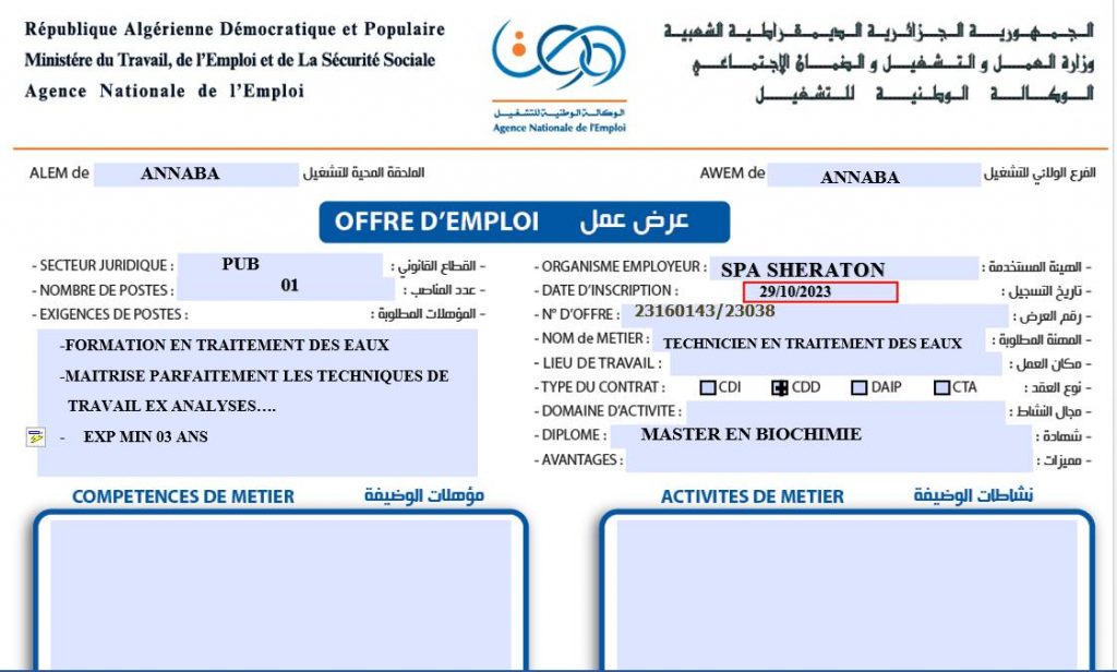 ملاحظة : العرض تم نشره على مستوى الملحقة المحلية للتشغيل عنابة