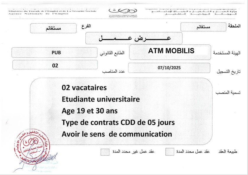 الهيئة المستخدمة: ATM MOBILIS