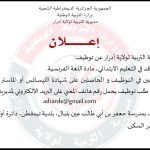 - تعلن مديرية التربية عن توظيف على اساس التعاقد: