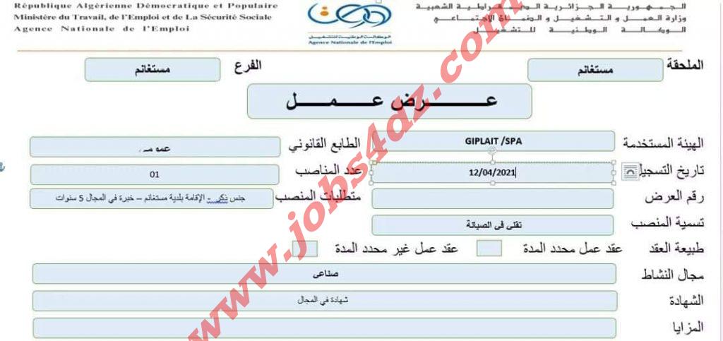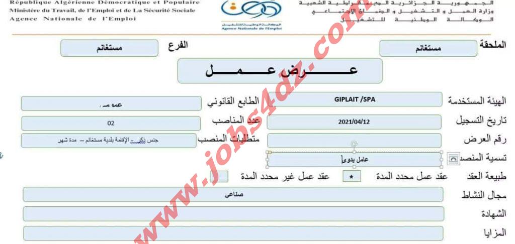 ملاحظة: يرجى من المهتمين المهتمين بالعروض، التقرب من الملحقة المحلية للتشغيل مستغانم.