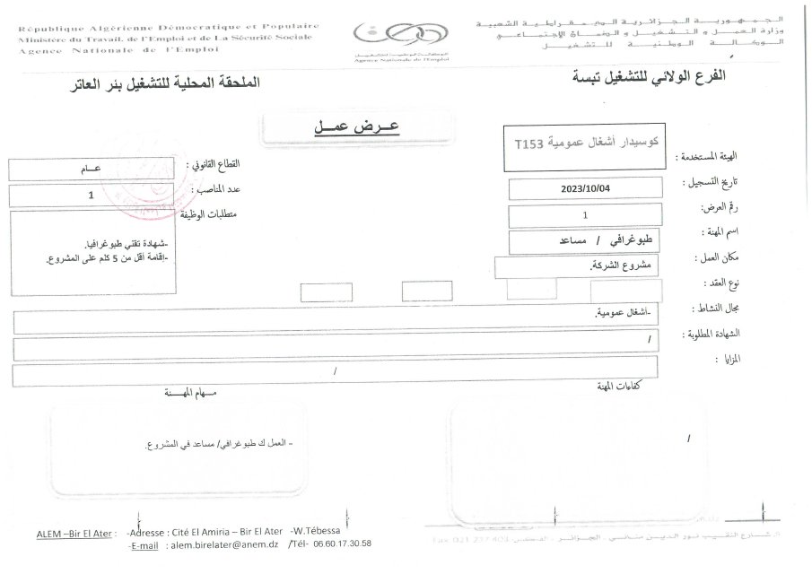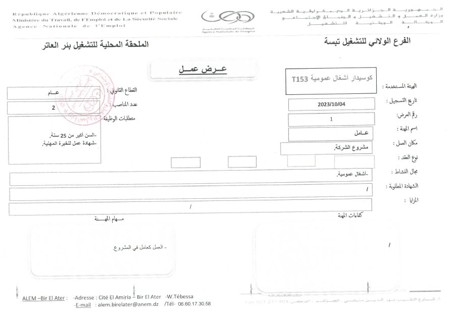 عروض عمل بشركة كوسيدار Cosider بالولايات التالية (38 منصب) شاركها Facebook Twitter LinkedIn Pinterest عروض عمل بشركة كوسيدار اكتوبر 2023 بالولايات التالية مستغانم تلمسان تبسة بوسعادة الفرع الولائي للتشغيـل المسيلة الملحقة المحلية للتشغيل
