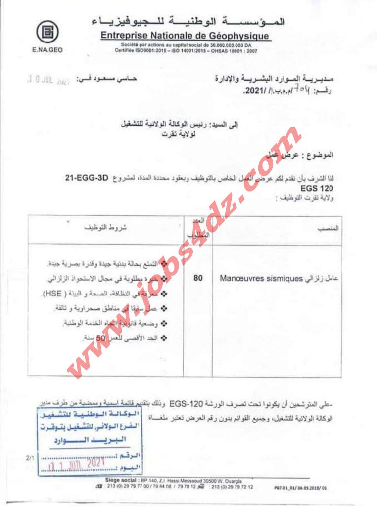 • 1- مؤسسة ENAGEO عامل عادي (80)