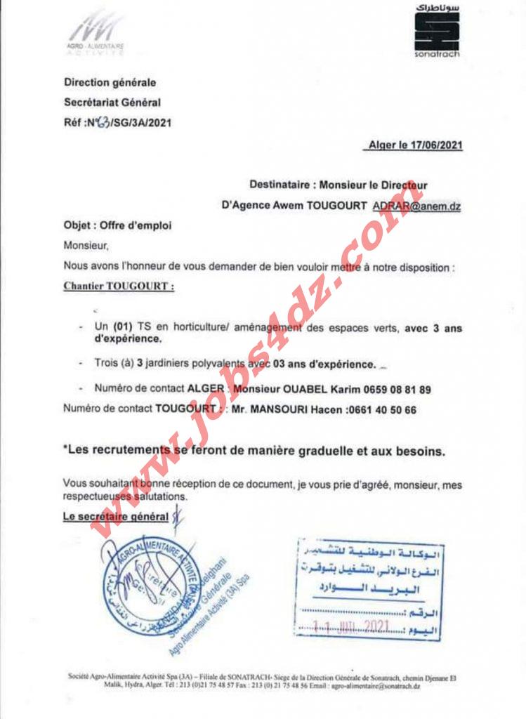 يرجى من المهتمين الاتصال بالوكالة الولائية للتشغيل لولاية تقرت