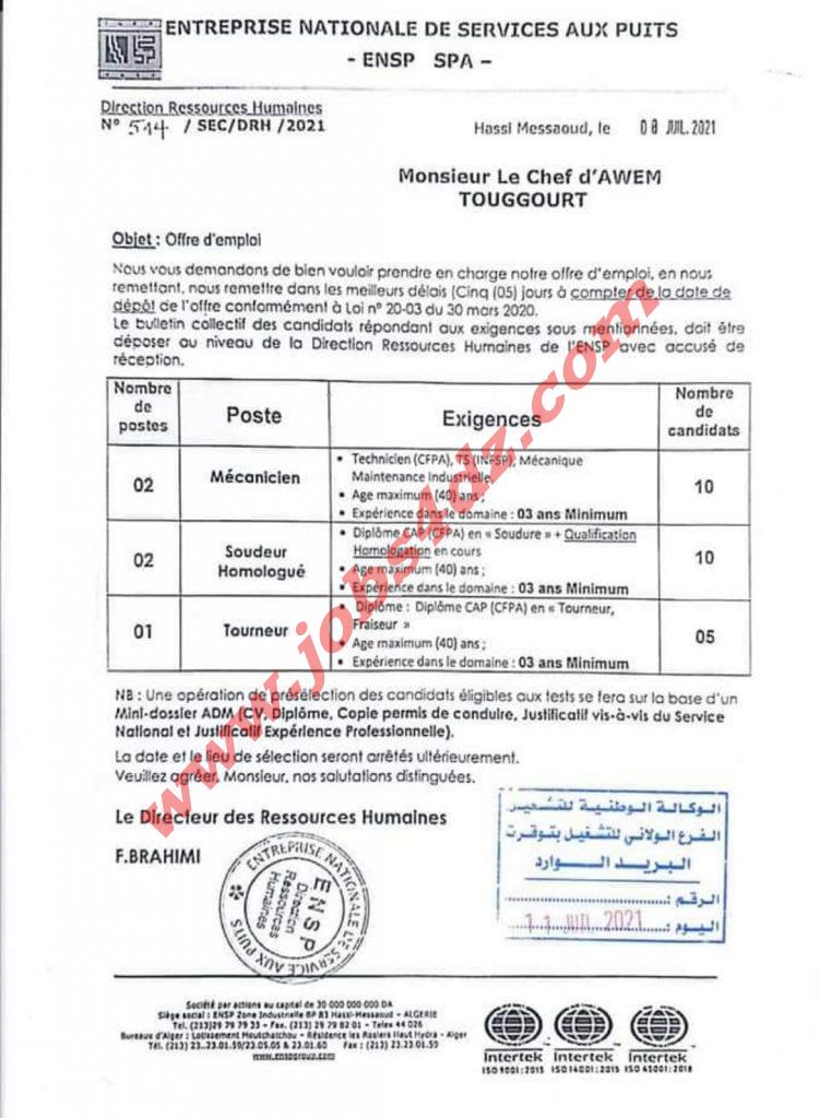 • 3- مؤسسةENAFOR مساعد سائق (15)