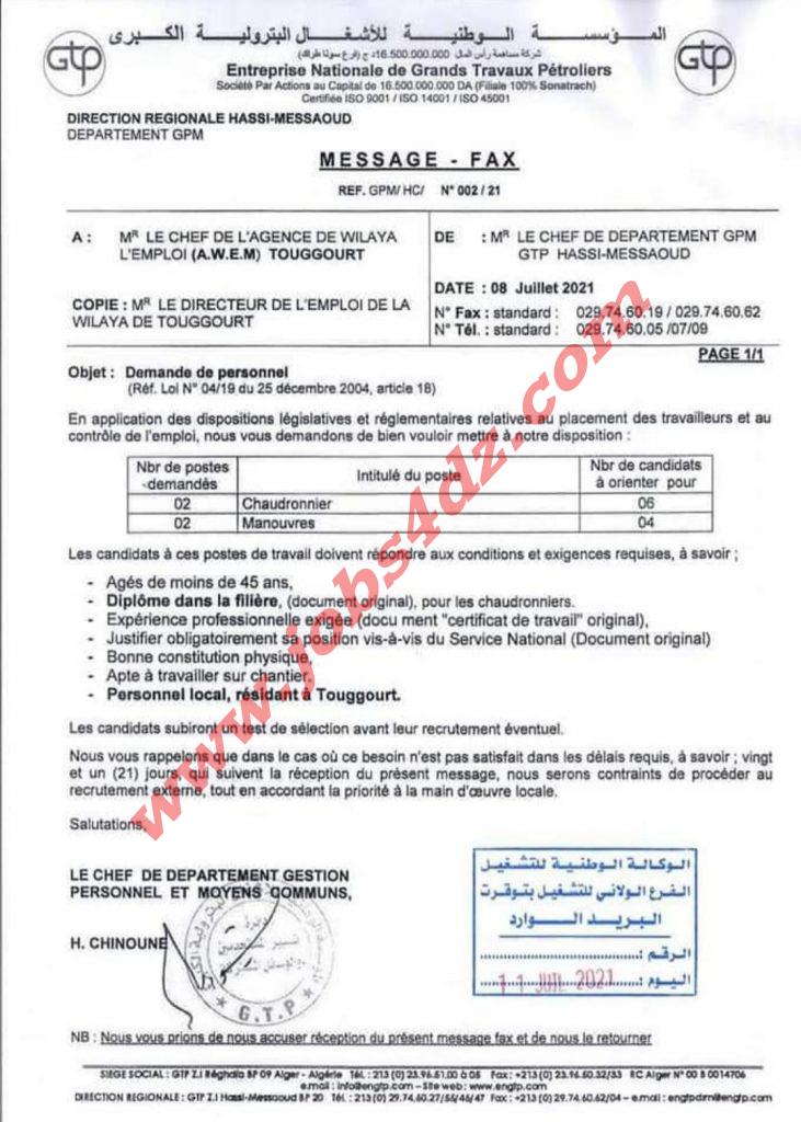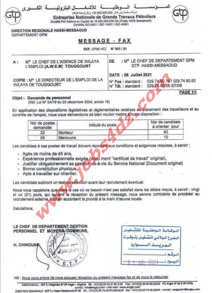 • 4- مؤسسةGTB مونتور (20) سودور (2) عامل عادي (2)