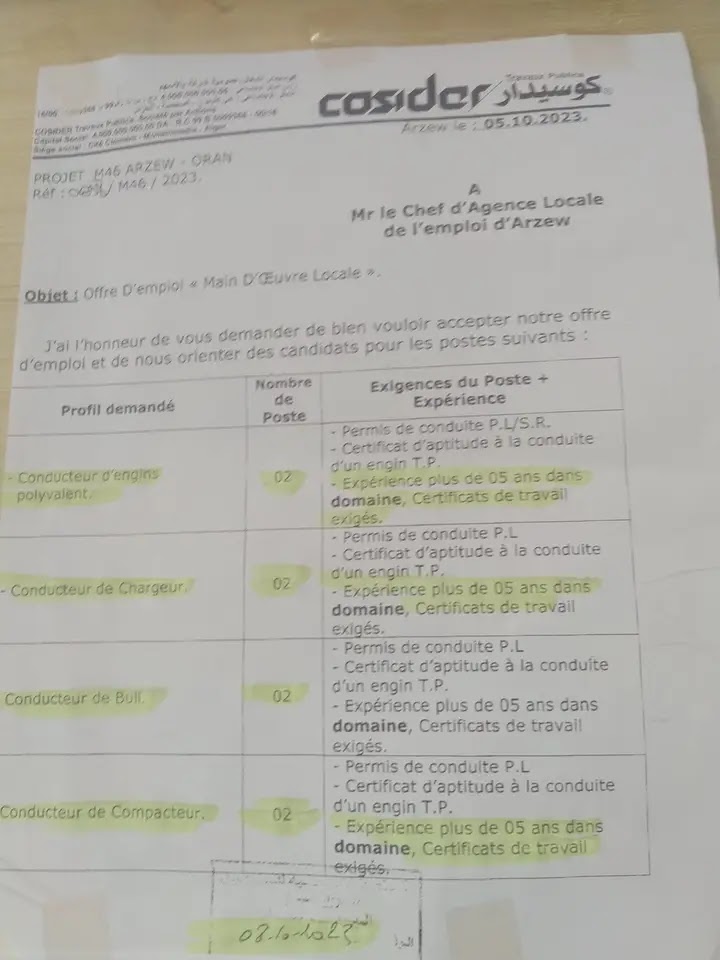 عروض عمل جديدة بشركة كوسيدار cosider بالولايات التالية: (34 منصب) شاركها Facebook Twitter LinkedIn Pinterest عروض عمل جديدة بشركة كوسيدار cosider بالولايات التالية: وهران بجاية الطارف الجلفة تبسة الملحقة المحلية للتشغيل
