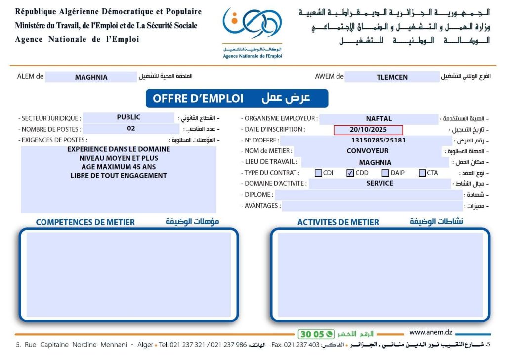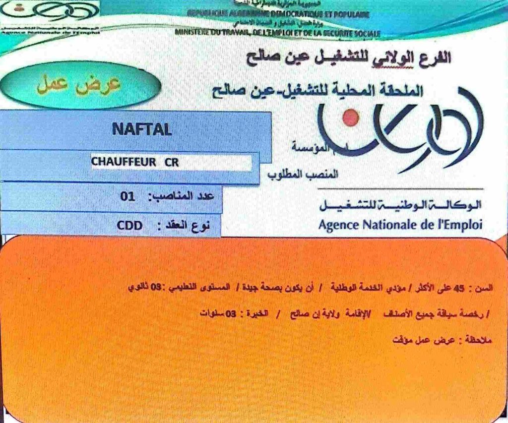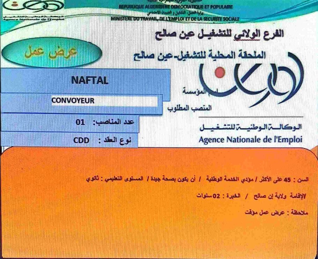 الهيئة المستخدمة: المؤسسة الوطنية لتسويق وتوزيع المنتجات البترولية نفطال