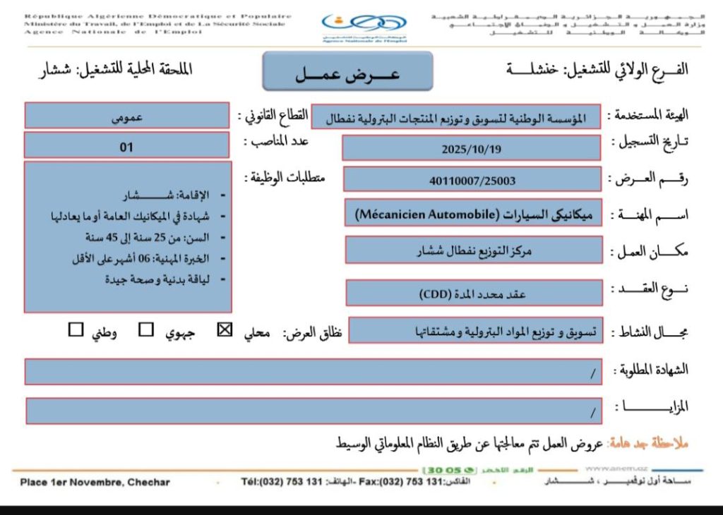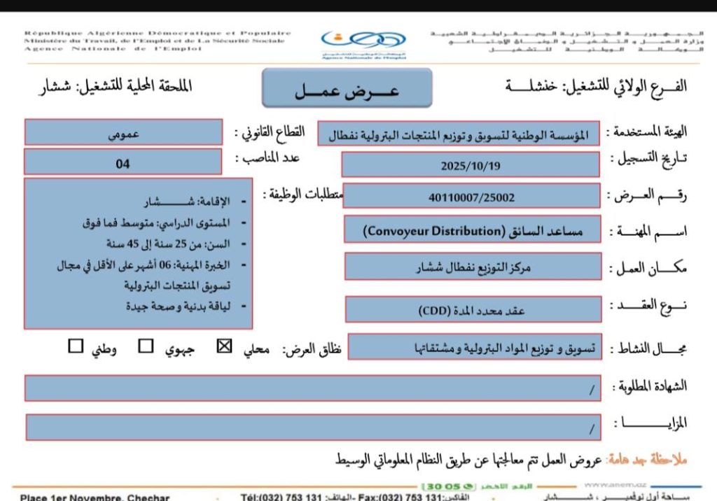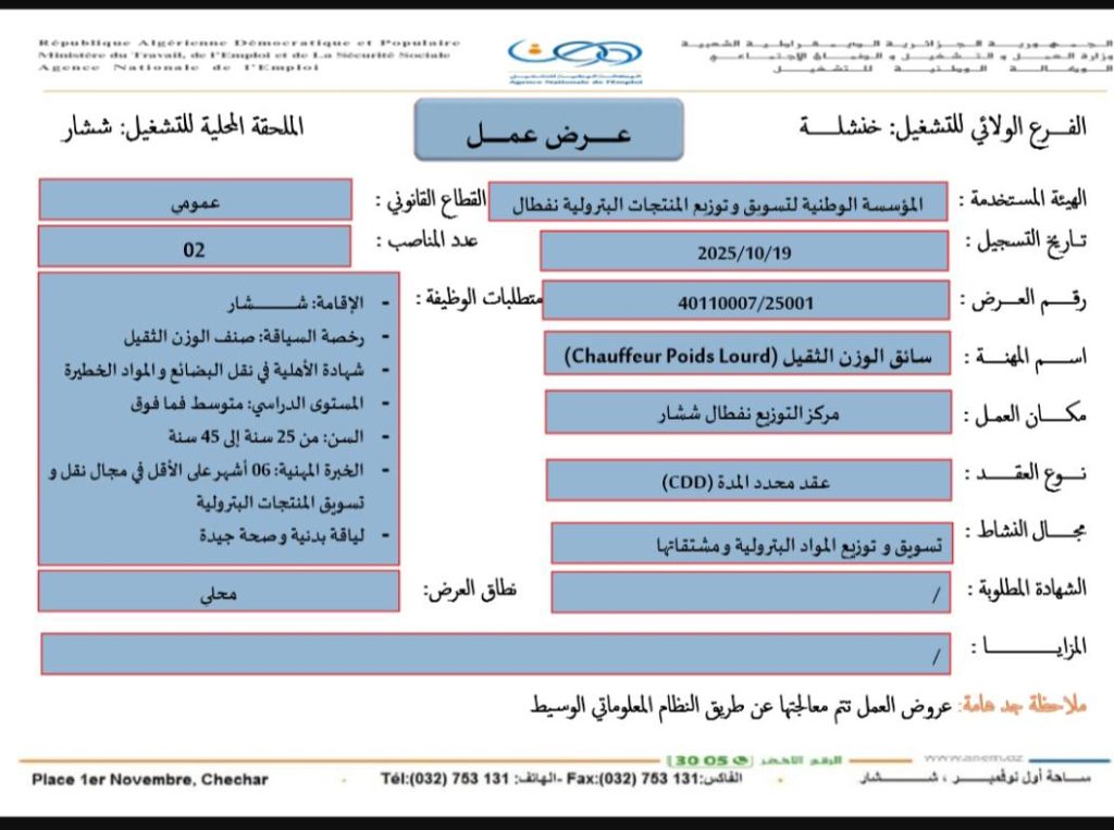 ملاحظة هامة: عروض العمل تم معالجتها عن طريق النظام المعلوماتي الوسيط