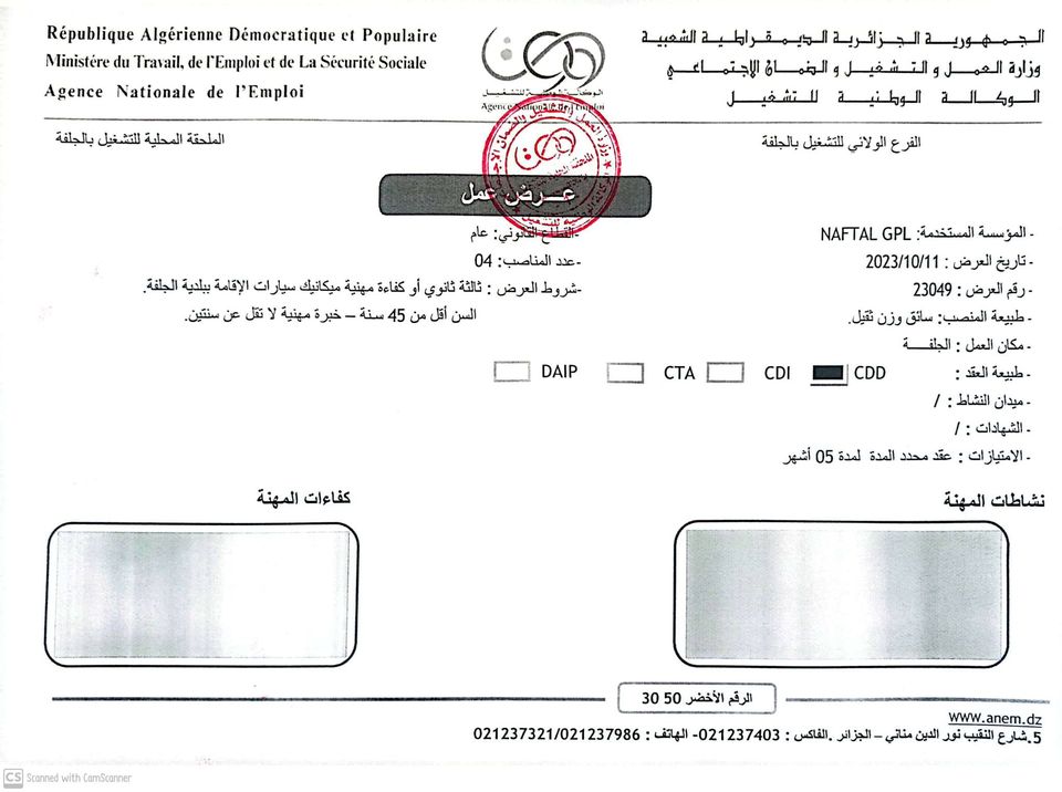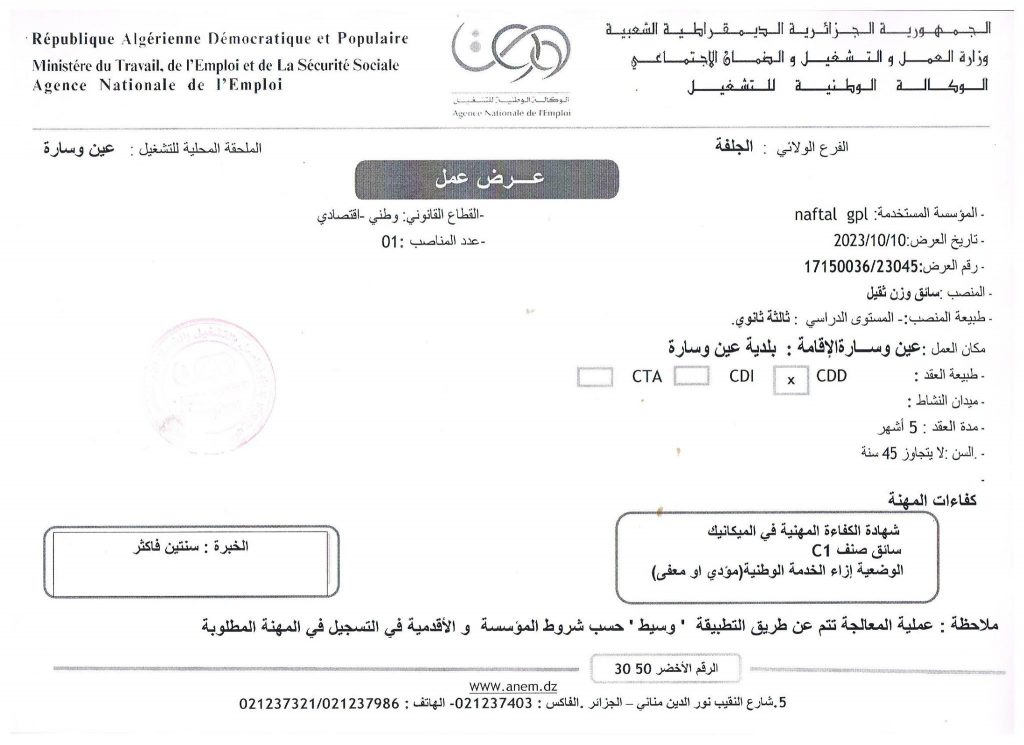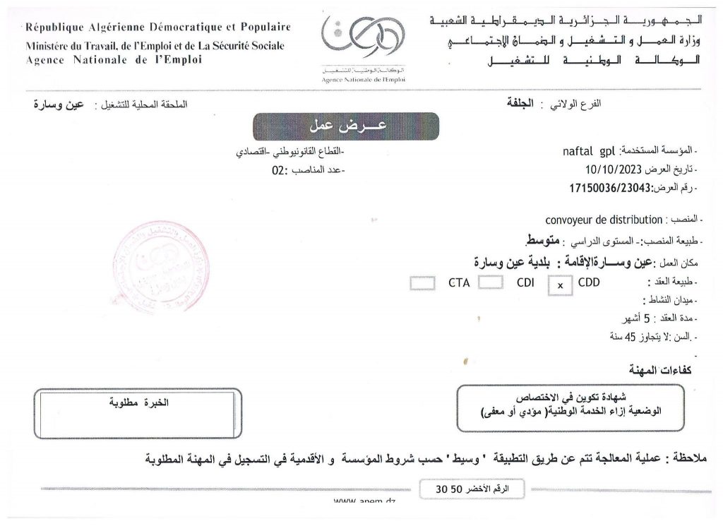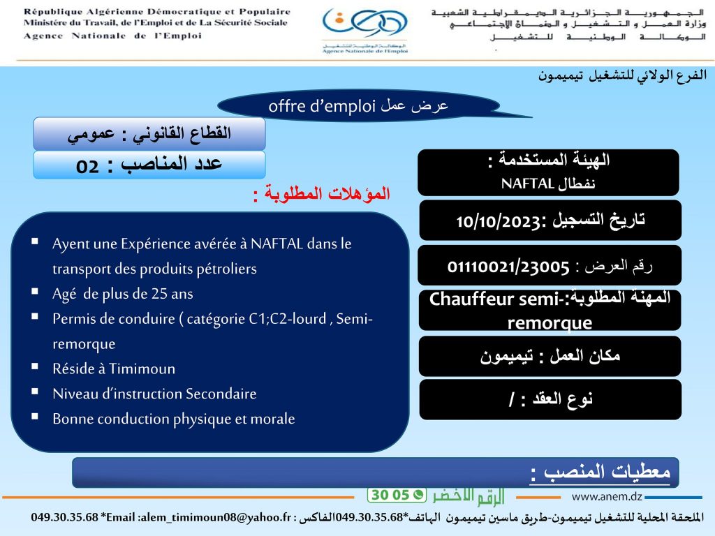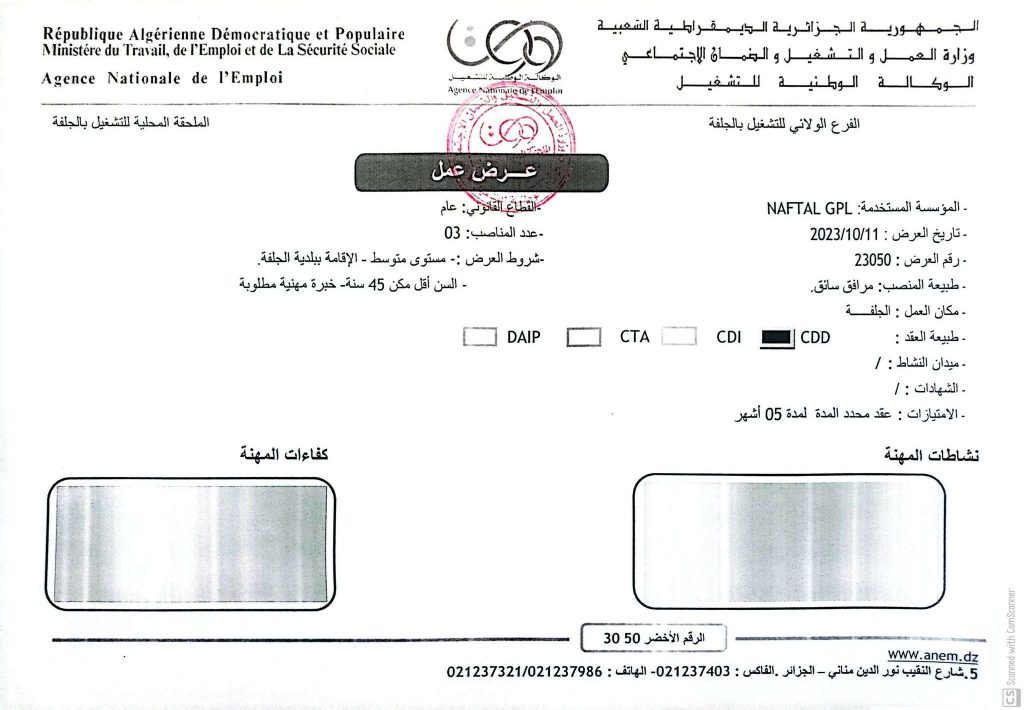 عروض عمل جديدة بشركة نفطال NAFTAL (35 منصب) شاركها Facebook Twitter LinkedIn Pinterest عروض عمل جديدة بشركة نفطال NAFTAL بولايات التالية : الجلفة تيميمون الفرع الولائي للتشغيـل الجلفة الملحقة المحلية للتشغيل