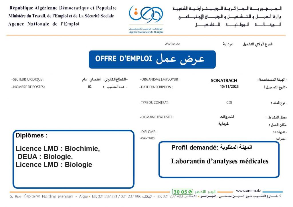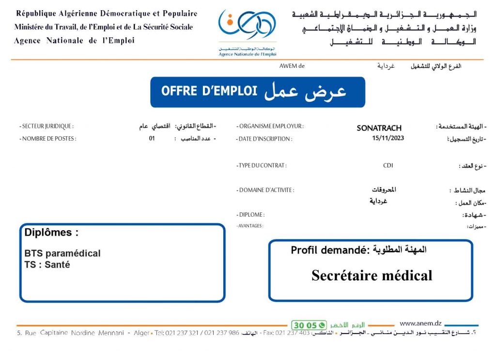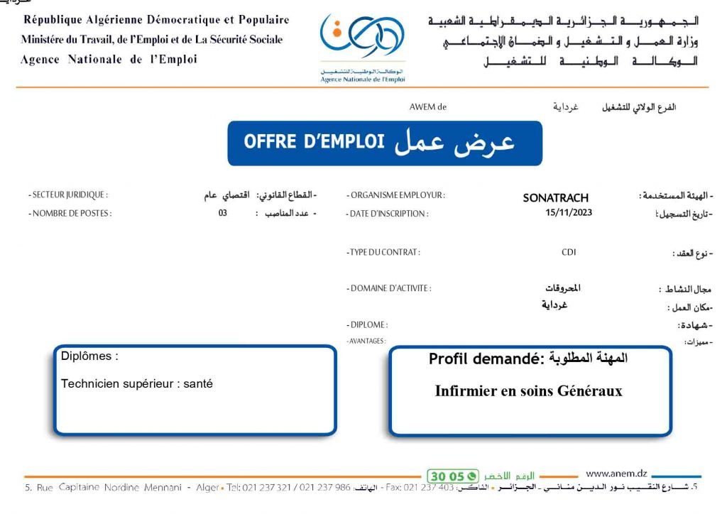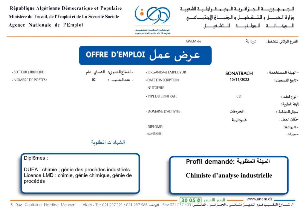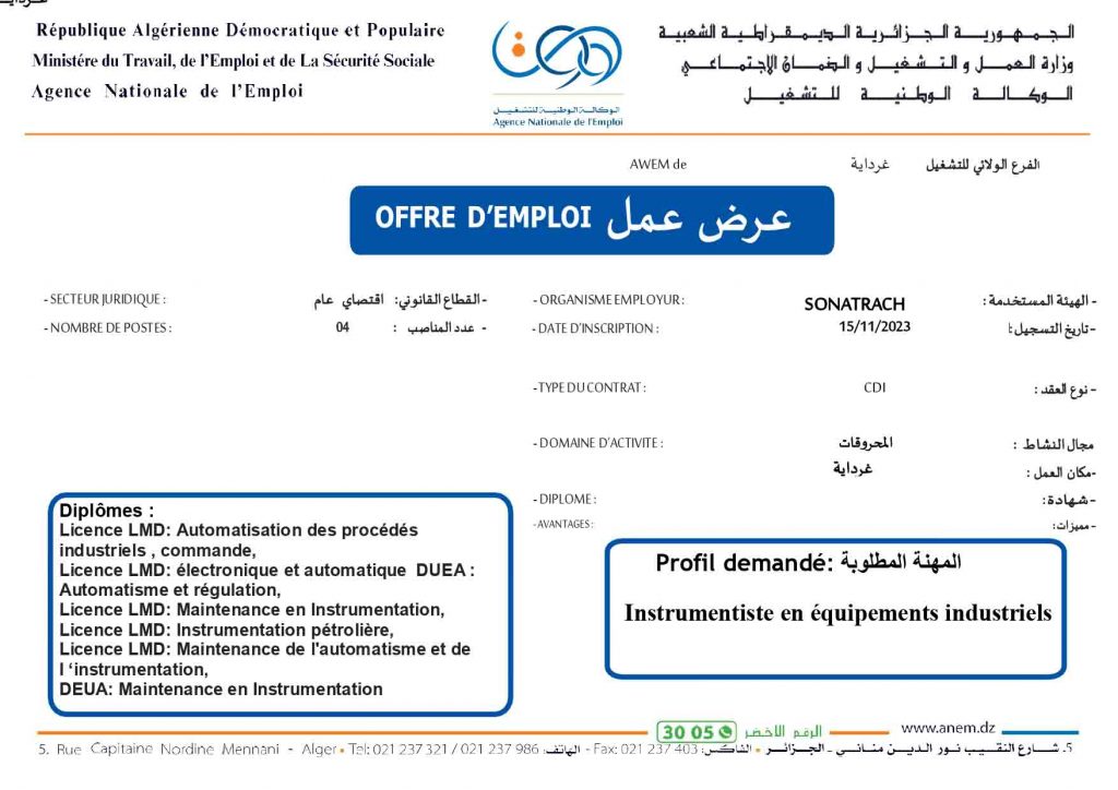 عروض عمل جديدة خاص بشركة سوناطراك Sonatrach (22 منصب) شاركها Facebook Twitter LinkedIn Pinterest الفرع الولائي للتشغيـل