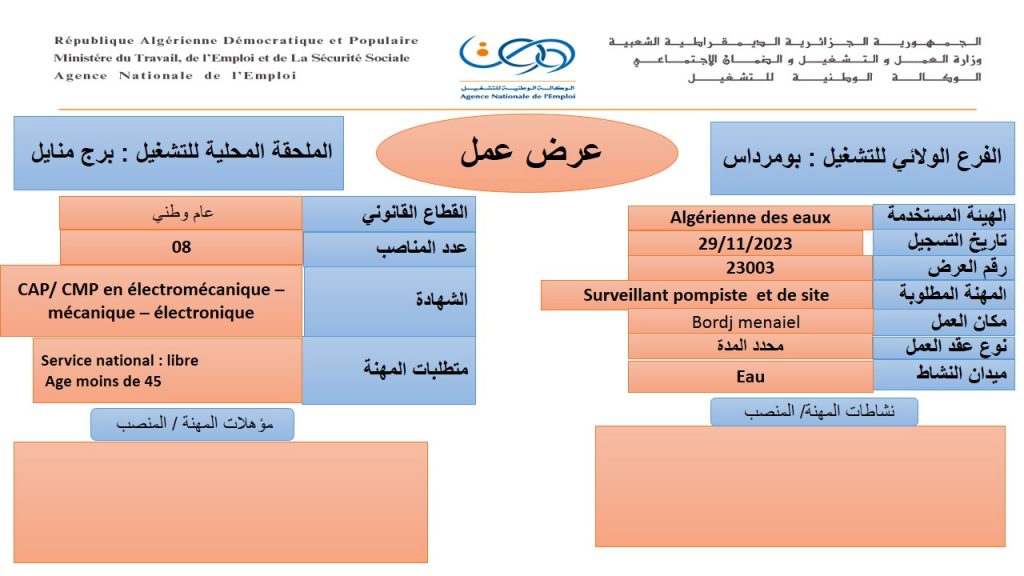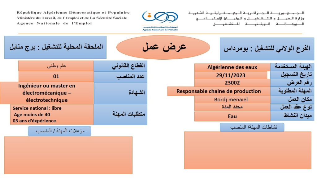 عروض عمل جديد بشركة الجزائرية للمياه ADE شاركها Facebook Twitter LinkedIn Pinterest الفرع الولائي للتشغيـل