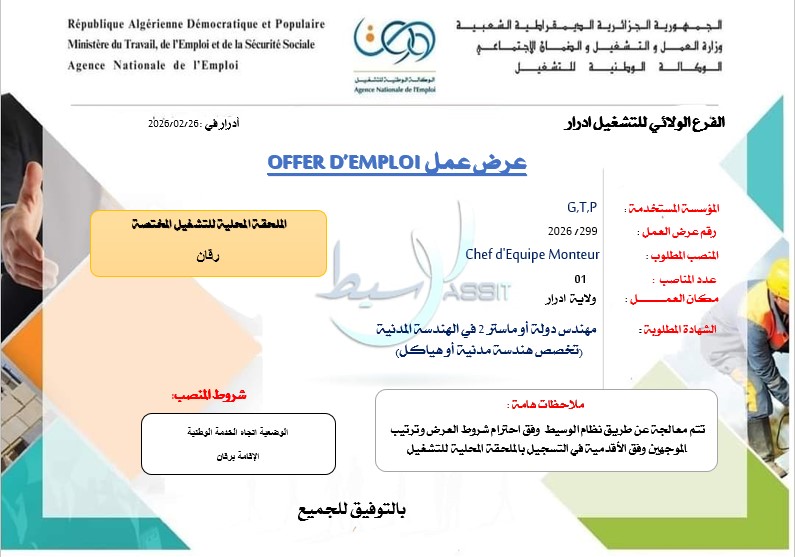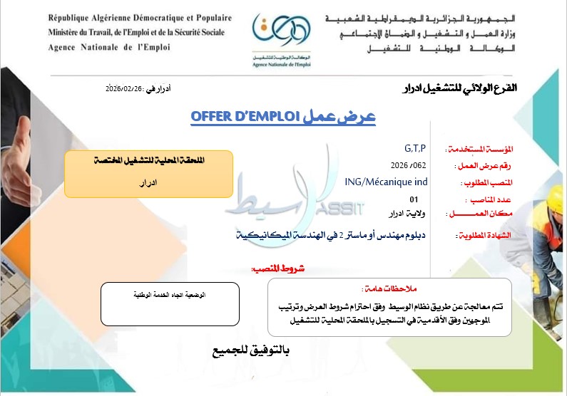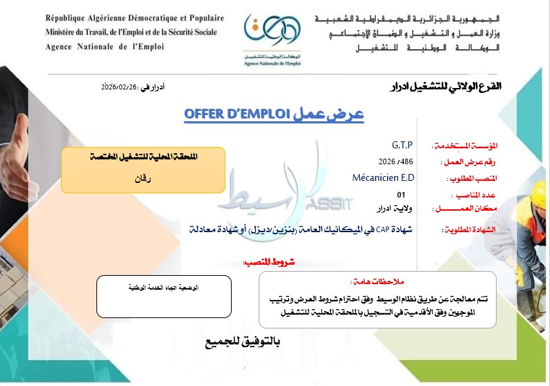 عرض عمل OFFER D’EMPLOI