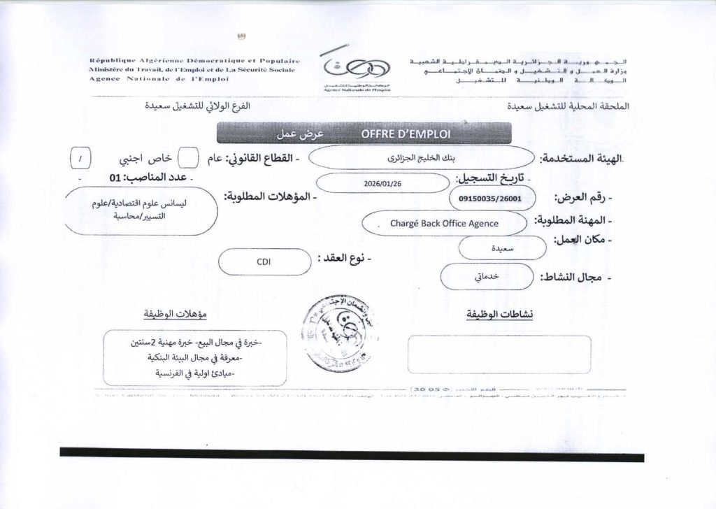 الهيئة المستخدمة: بنك الخليج الجزائري