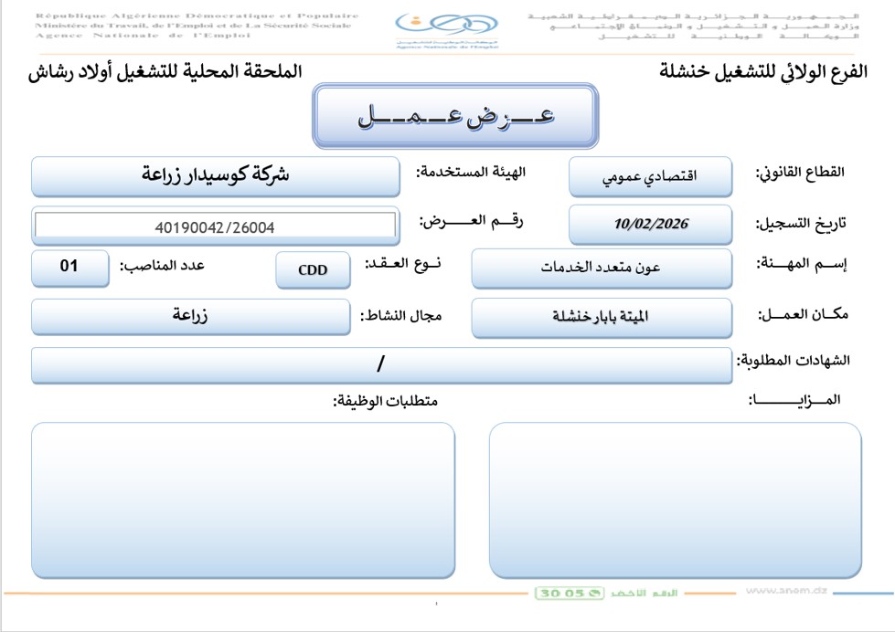 الفرع الولائي للتشغيل خنشلة | الملحقة المحلية للتشغيل أولاد رشاش
