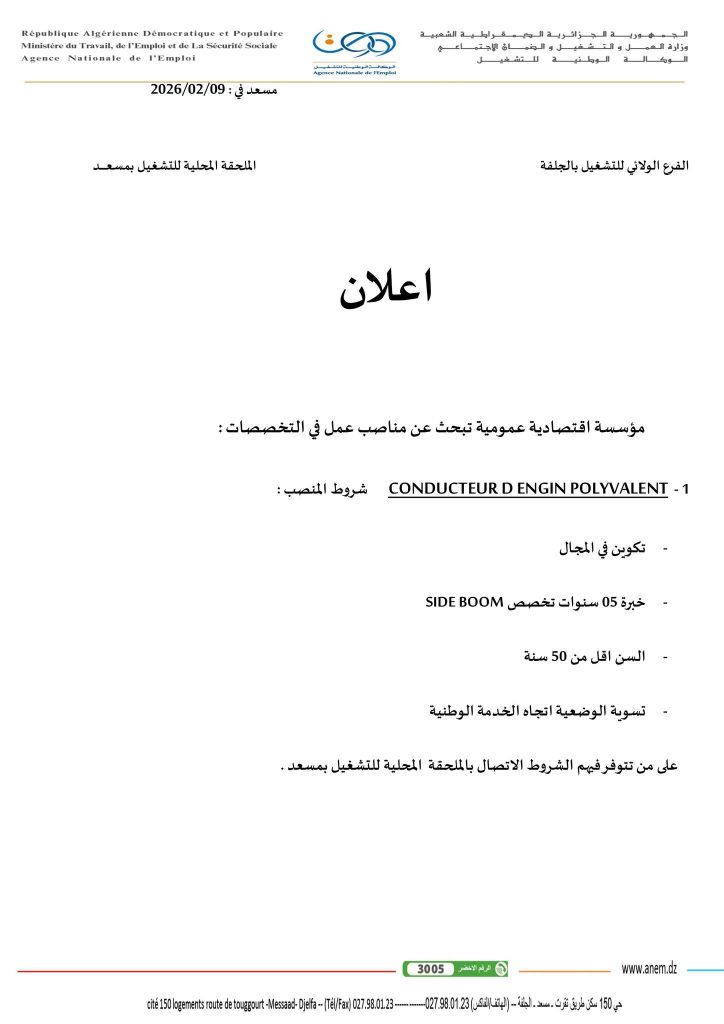 على من تتوفر فيهم الشروط الاتصال بالملحقة المحلية للتشغيل بمسعد.